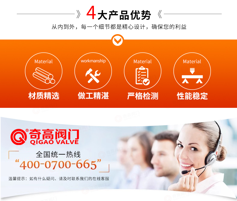 “奇高閥門”的期望,不斷提升服務(wù)質(zhì)量,精益求精,“真誠的服務(wù)”是“奇高”永恒的主題?!捌娓摺眹?yán)格按照IS09001-2000 質(zhì)量體系認(rèn)證要求,質(zhì)量嚴(yán)格把關(guān), 責(zé)任到人,確保生產(chǎn)、銷售、服務(wù)的健康運(yùn)行。加強(qiáng)與用戶溝通,竭誠為廣大客戶提供優(yōu)良產(chǎn)品,貼心服務(wù)。特此我廠做出以下承諾: