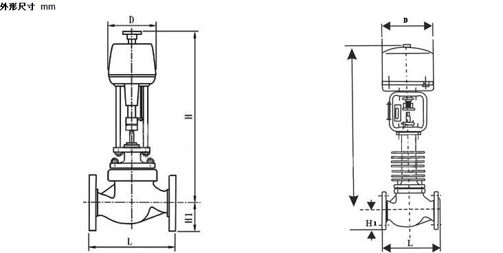 電子式電動(dòng)單座調(diào)節(jié)閥 主要外形尺寸